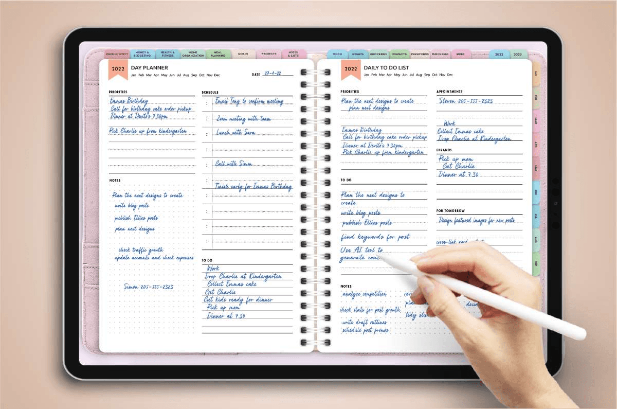 Writing inside a digital planner feels similar to pen and paper, but with the added benefit of flexibility. You can erase, rearrange, duplicate pages, and reuse layouts without starting over. Over time, the planner becomes a single place where your schedule, notes, and plans live together.